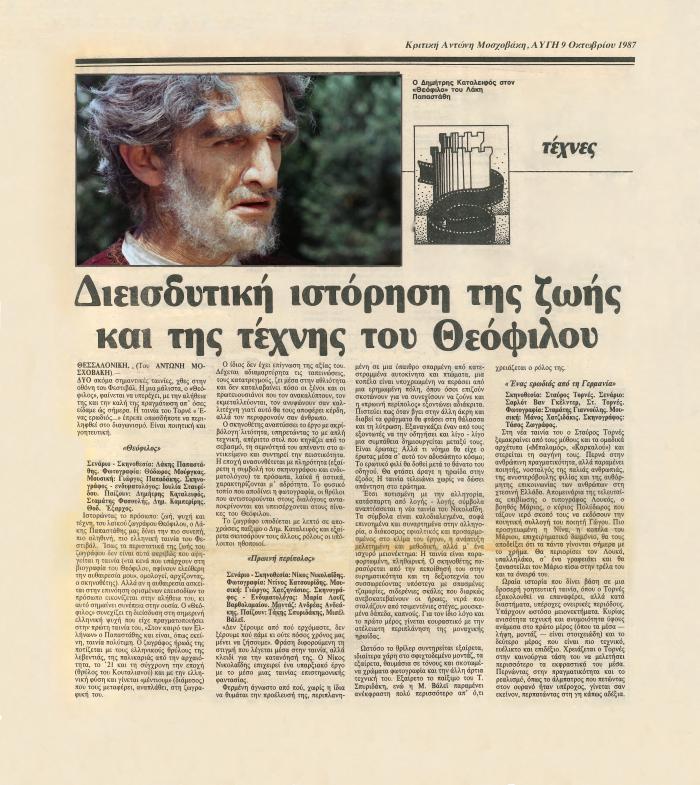 Δημοσιεύθηκε στην Αυγή, 9 Οκτωβρίου 1987