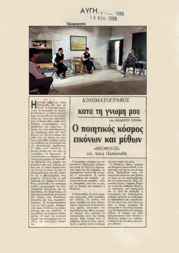 Δημοσιεύθηκε στην εφημερίδα "ΠΡΩΤΗ", 19 Φεβρουαρίου 1988