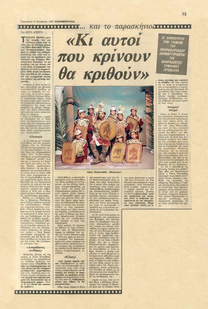 Δημοσιεύθηκε στον Ελεύθερο Τύπο, 9 Οκτωβρίου 1987