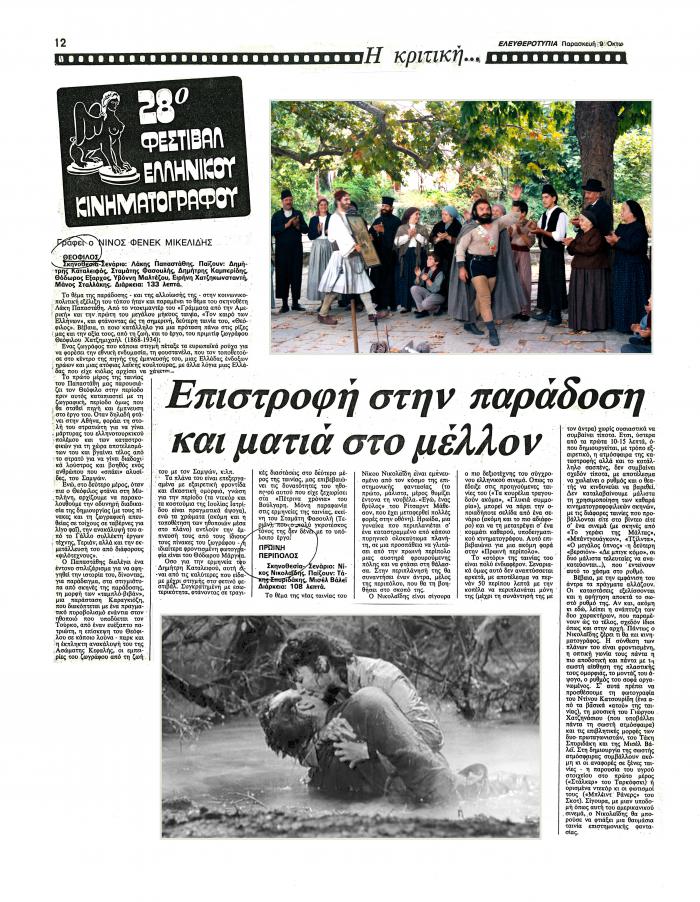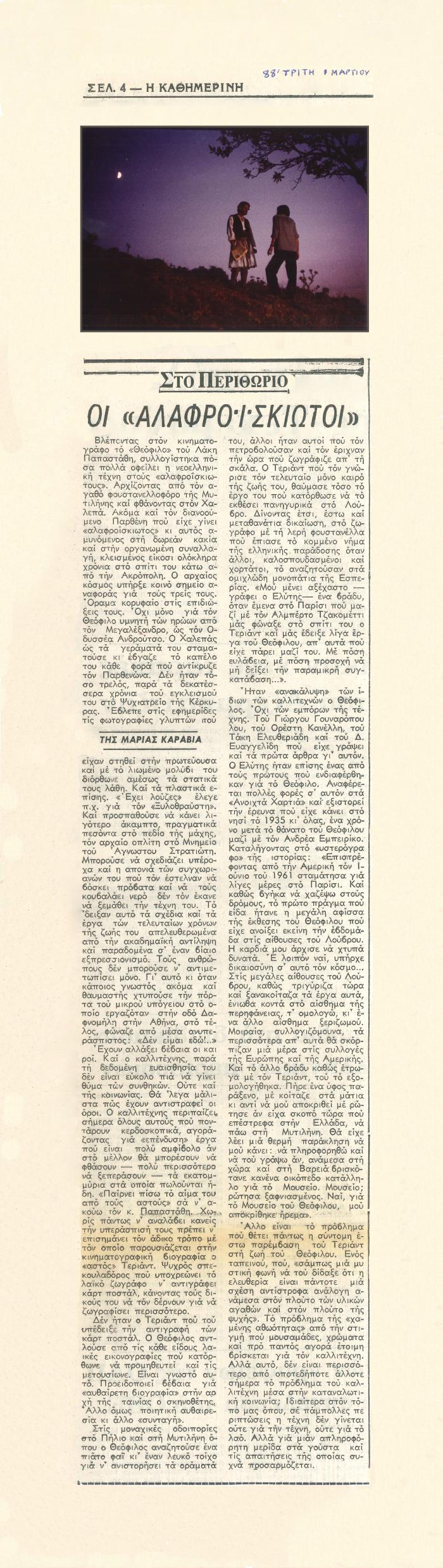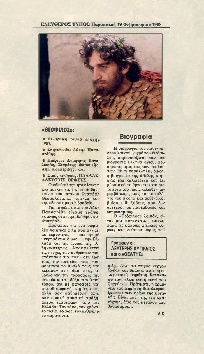 Δημοσιεύθηκε στον Ελεύθερο Τύπο Παρασκευή 19 Φεβρουαρίου 1988