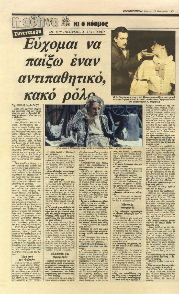 Δημοσιεύθηκε στην Ελευθεροτυπία στις 26 Οκτωβρίου 1987