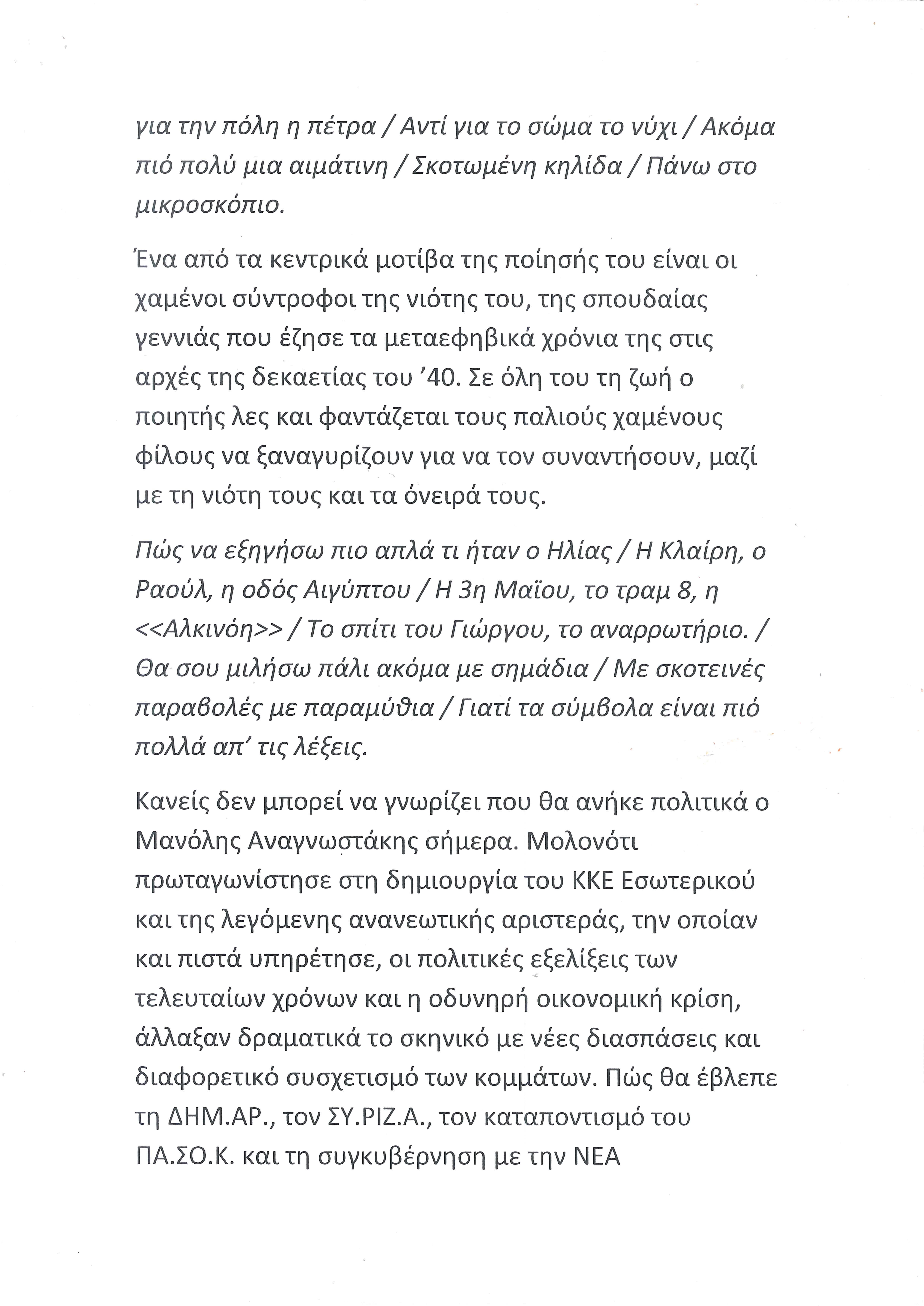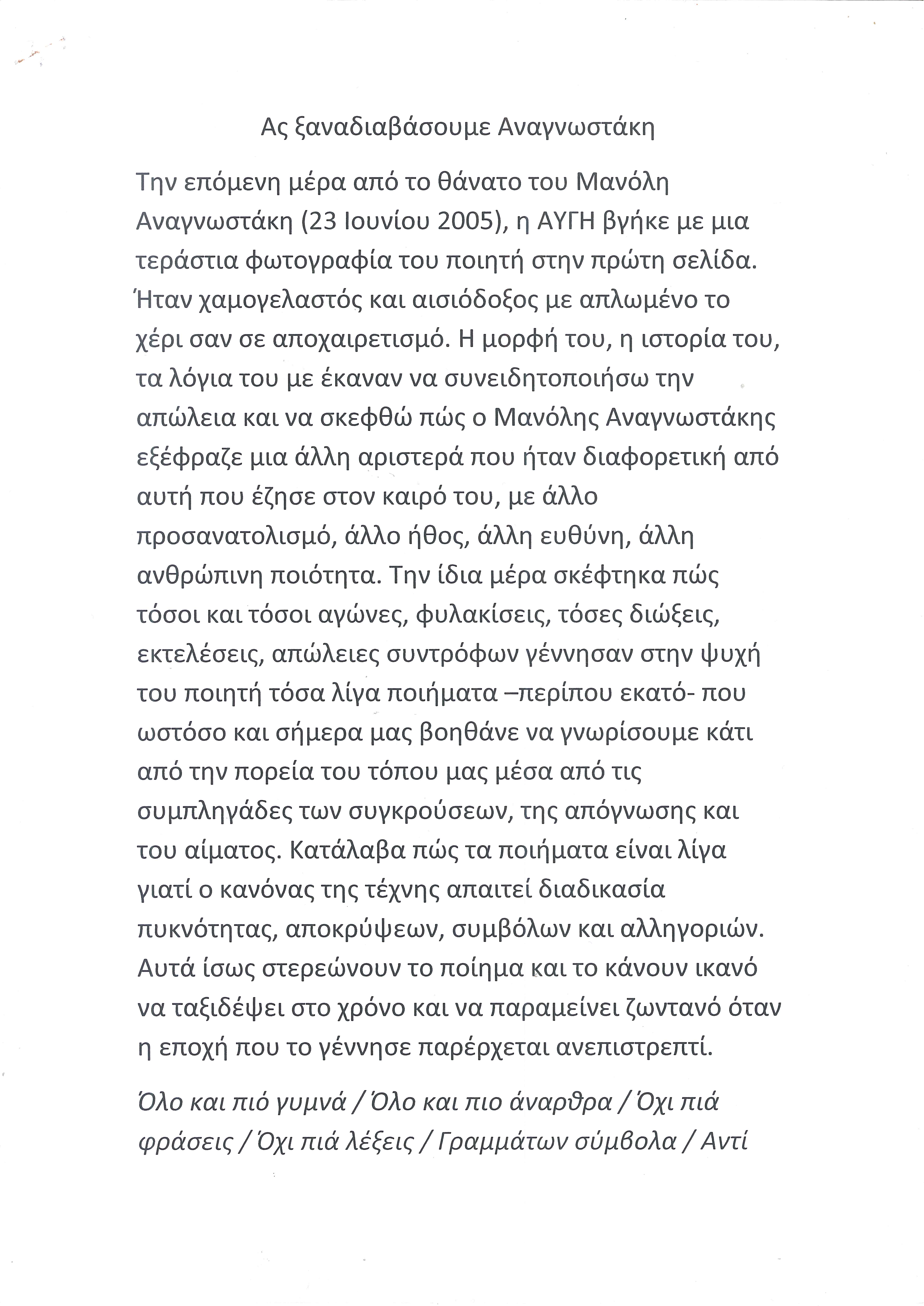 Ας ξαναδιαβάσουμε Αναγνωστάκη(Κυριακάτικο Βήμα)