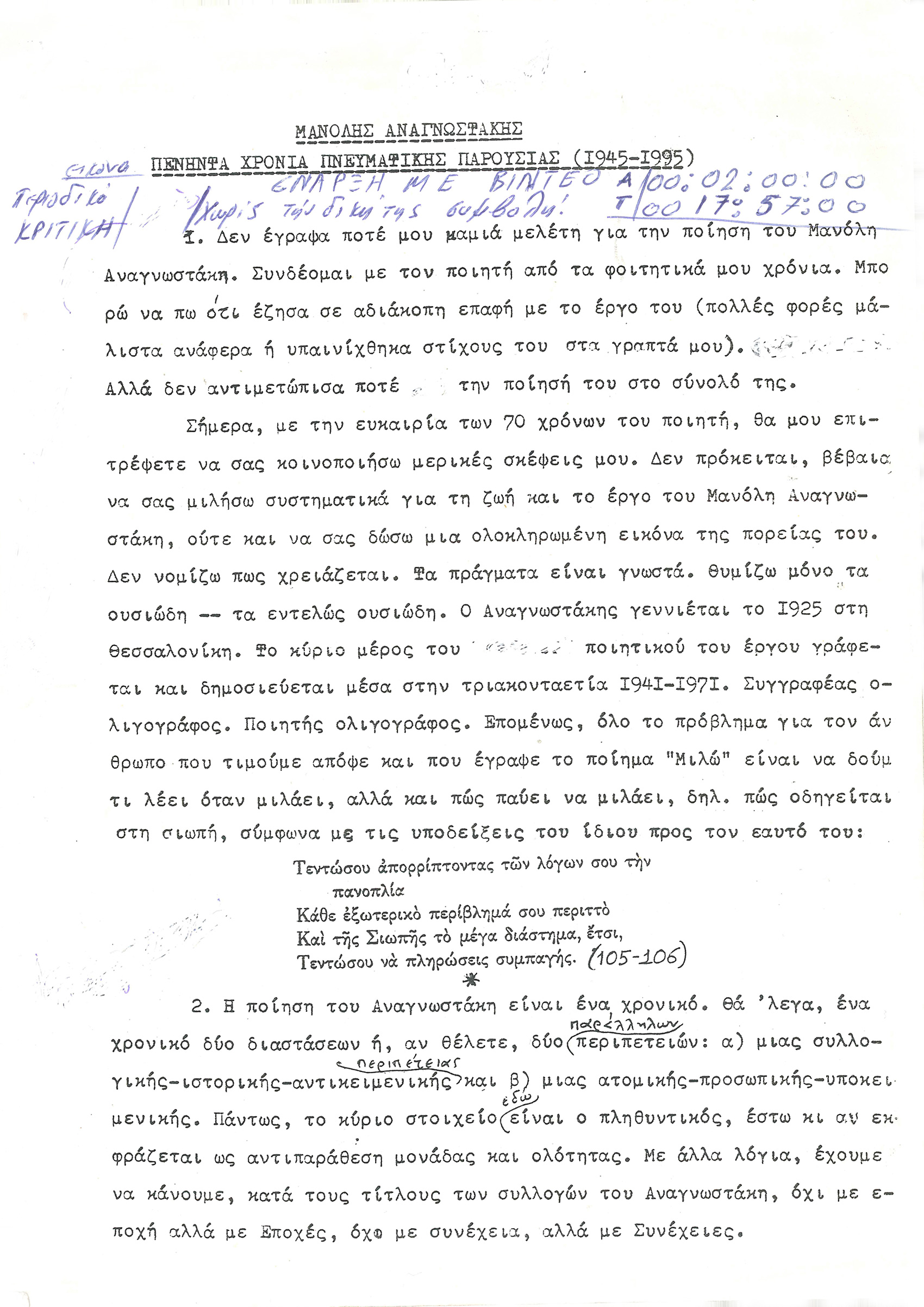 Κείμενα Πάνου Μουλλά, απαγγελία Δημήτρη Καταλειφού κινηματογραφικές εικόνες Λάκη Παπαστάθη