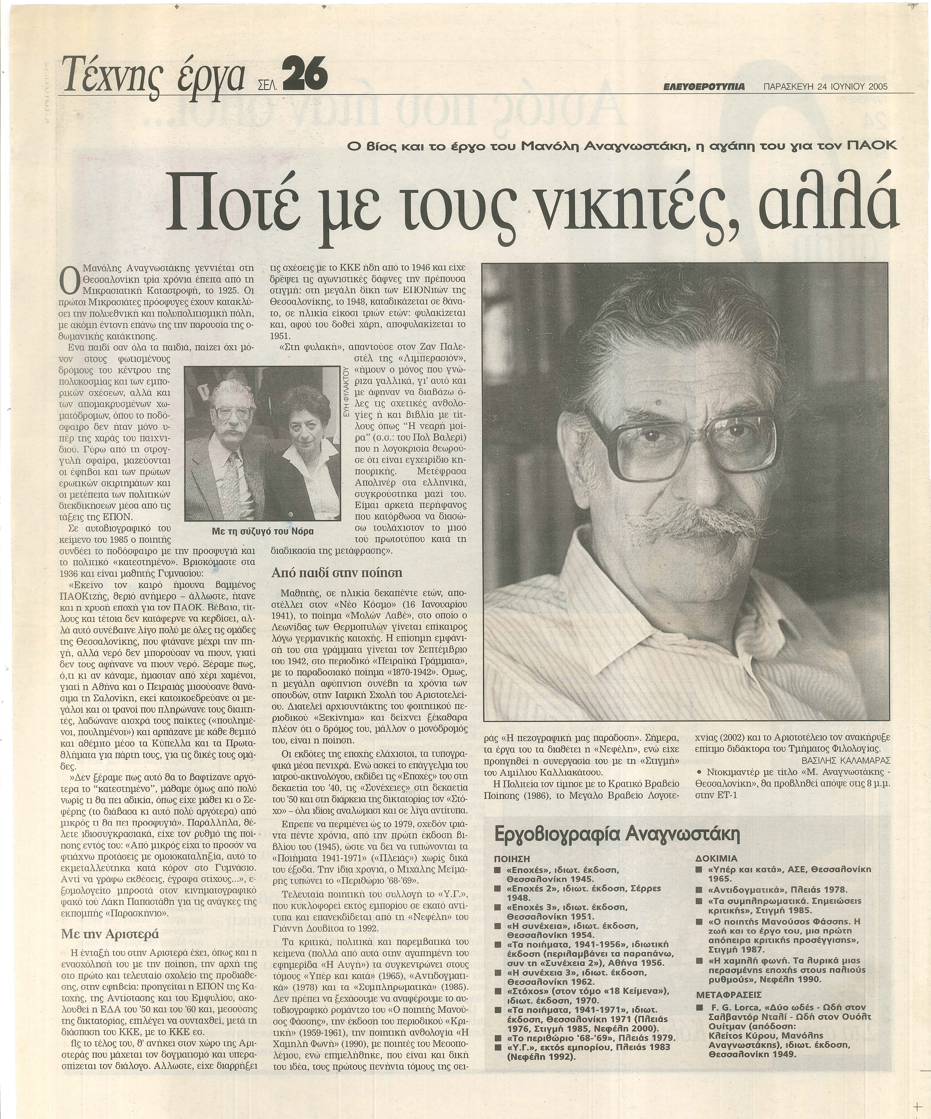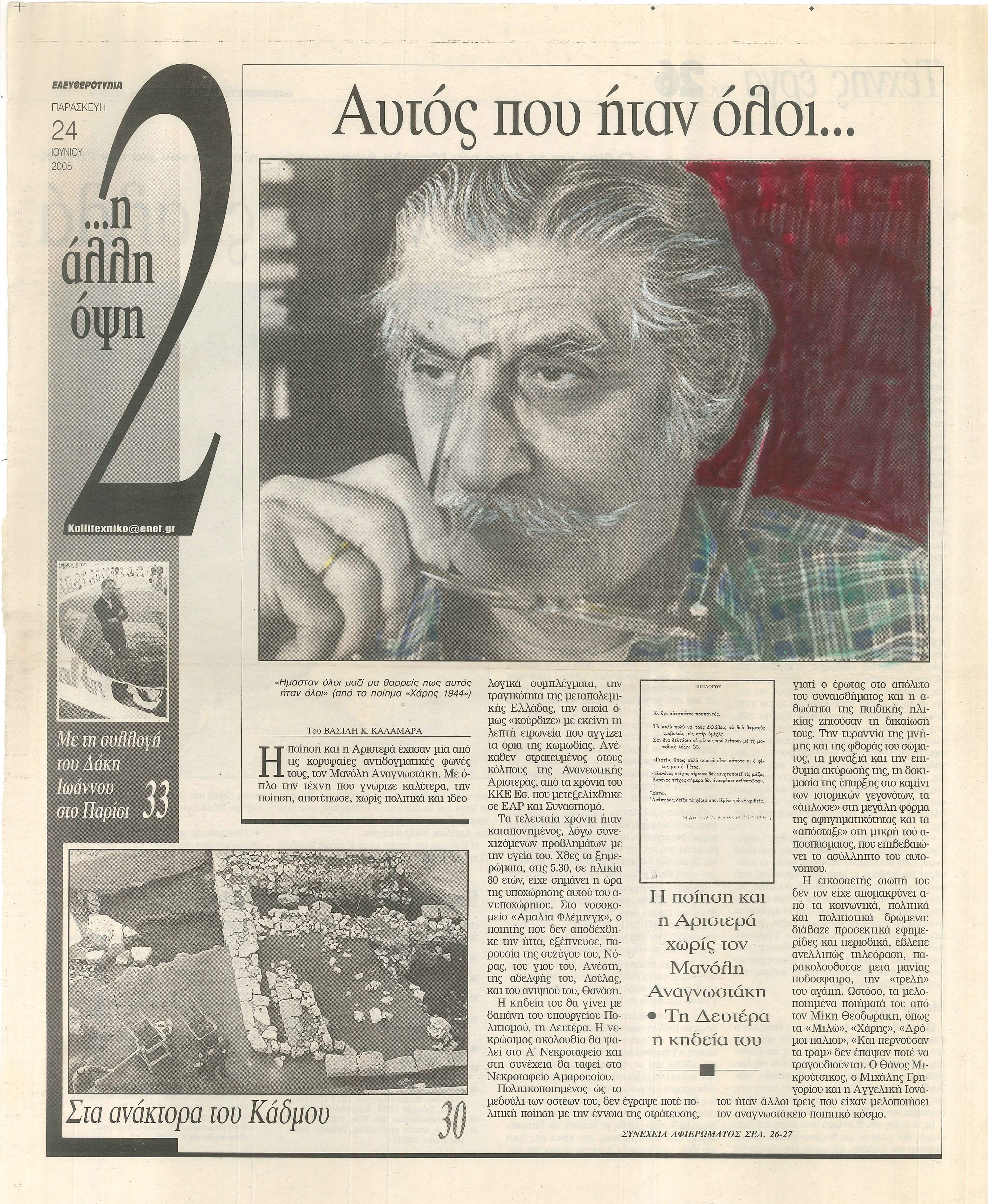Η είδηση του θανάτου του Μανόλη Αναγνωστάκη
