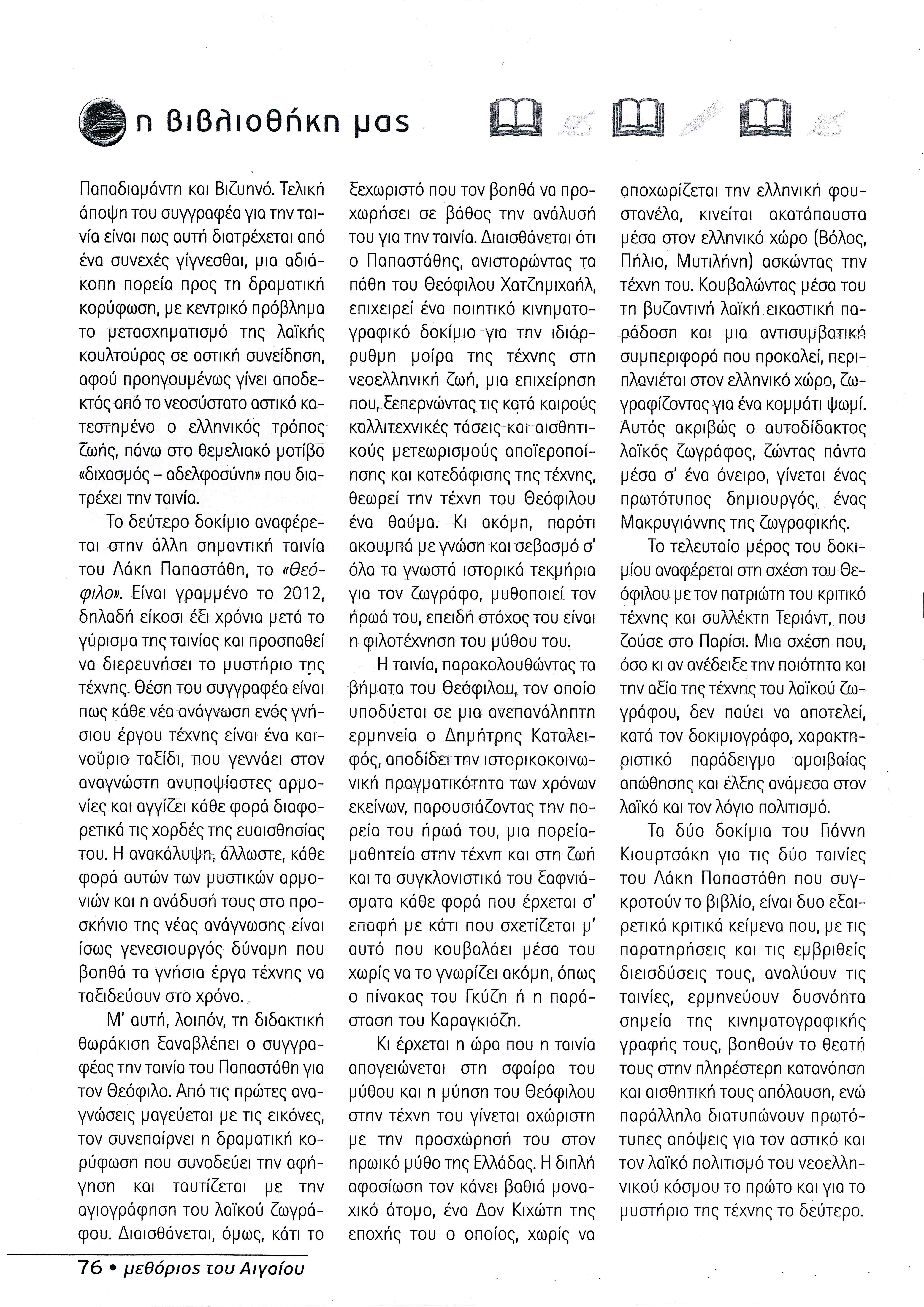 Κείμενο Γιώργου Κρόκου στο περιοδικό "Μεθόριος του Αιγαίου"