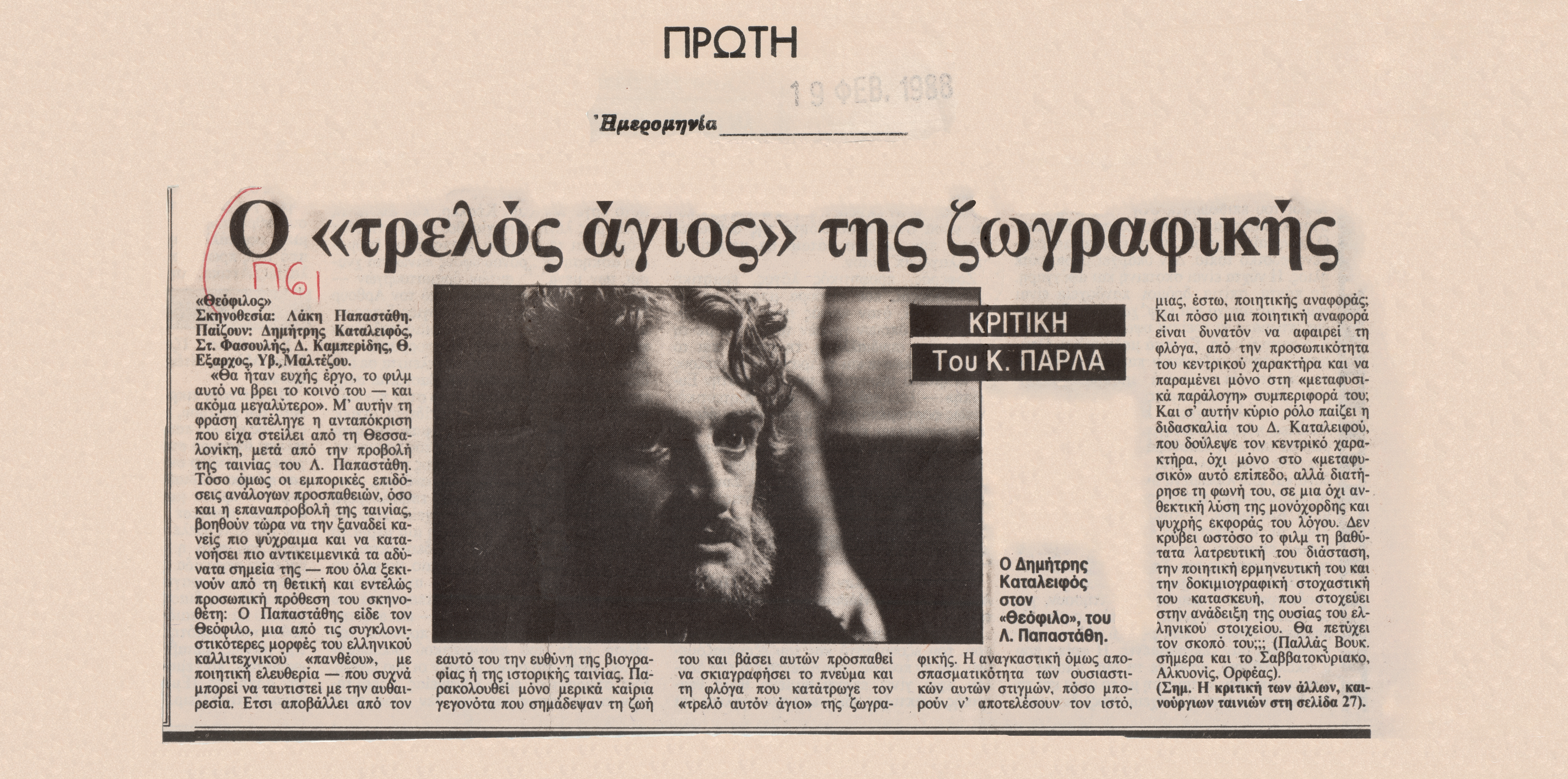 Δημοσιεύθηκε στην εφημερίδα "ΠΡΩΤΗ", 19 Φεβρουαρίου 1988