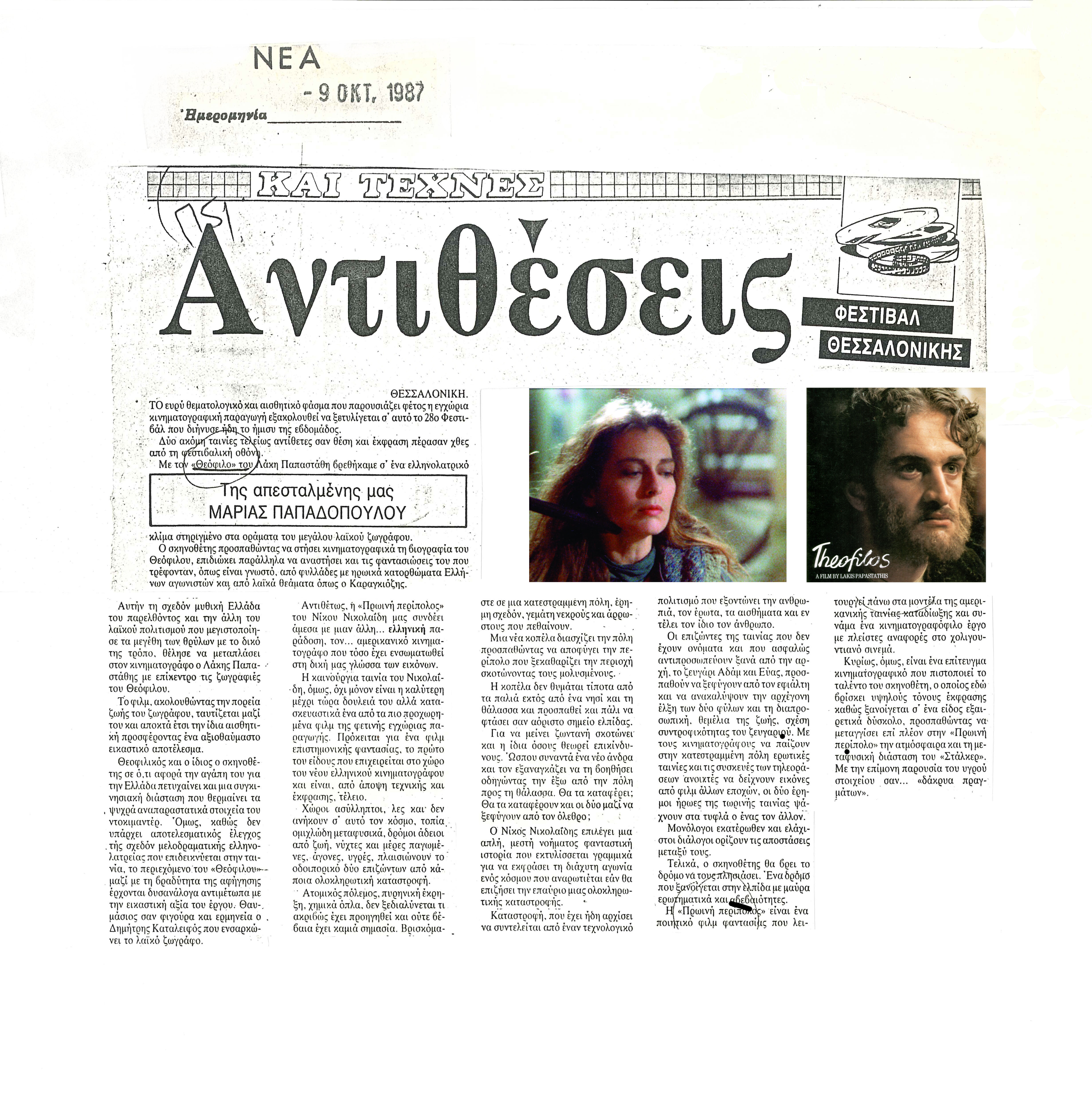 Δημοσιεύθηκε στα Νέα, 9 Οκτωβρίου 1987