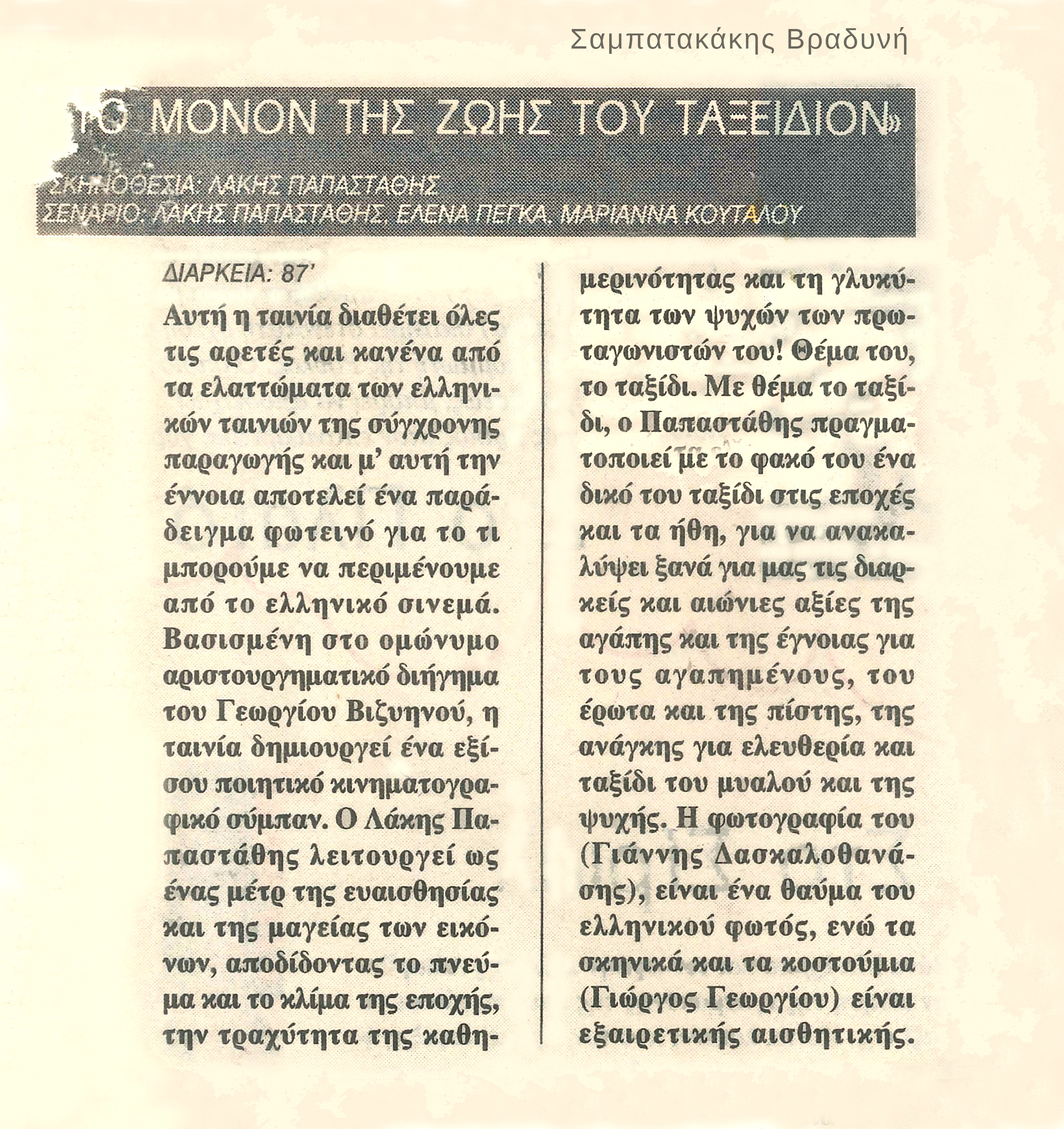 Κριτική Σαμπατάκη στην Βραδυνή
