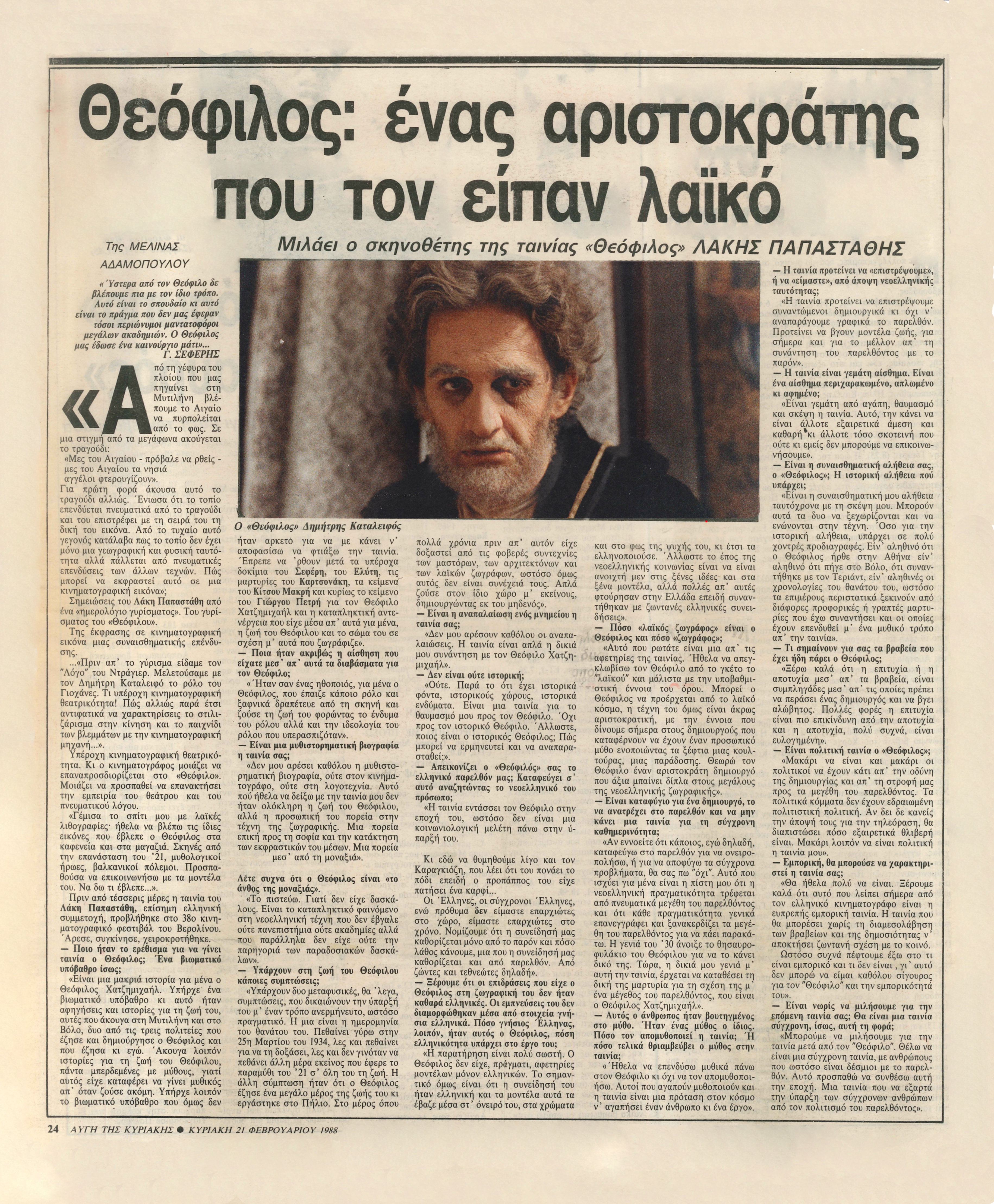 Δημοσιεύθηκε στην Αυγή τη Κυριακής, 19 Φεβρουαρίου 1988