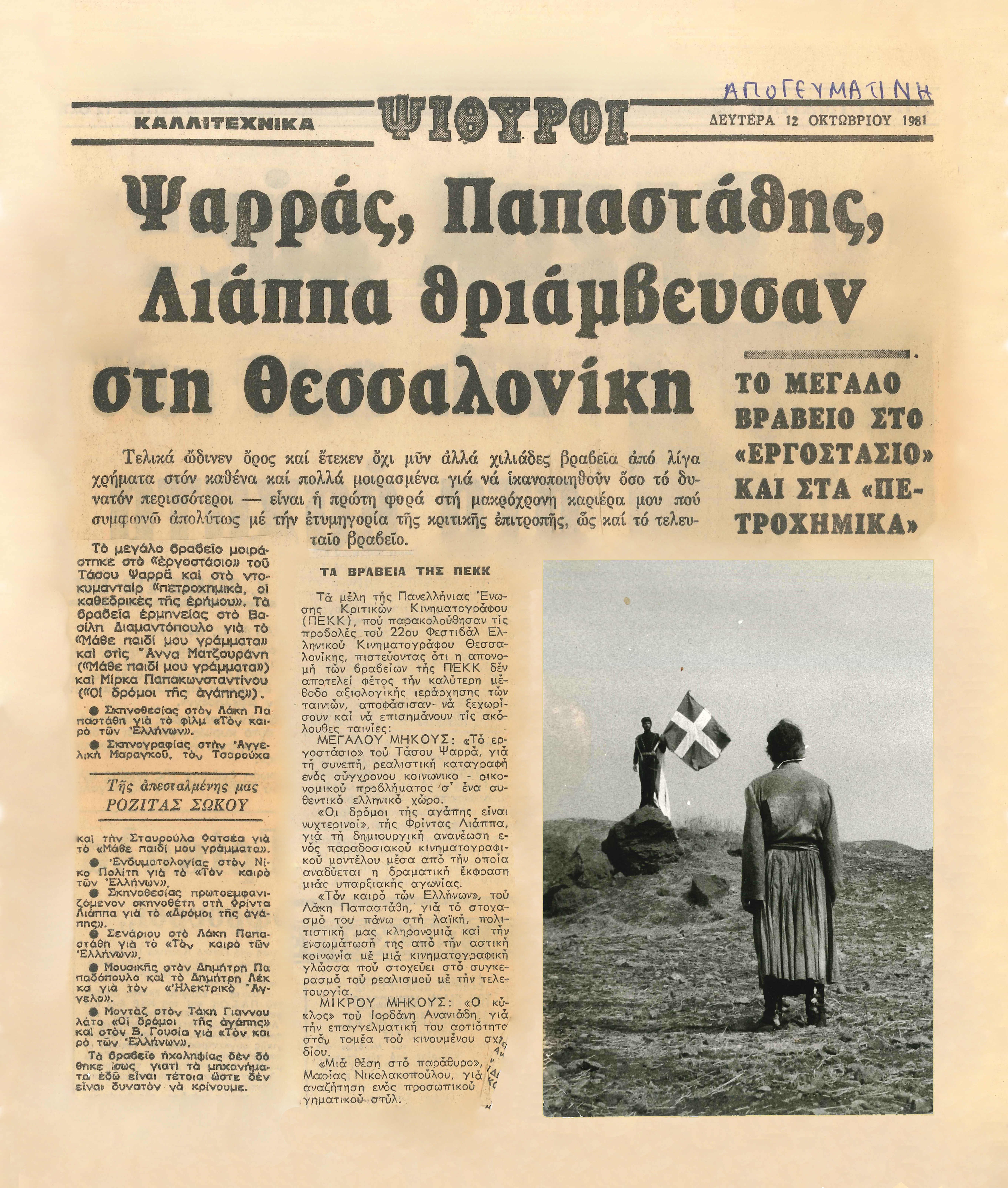 Βραβεία Φεστιβάλ Θεσσαλονίκης(Ροζίτα Σώκου)
