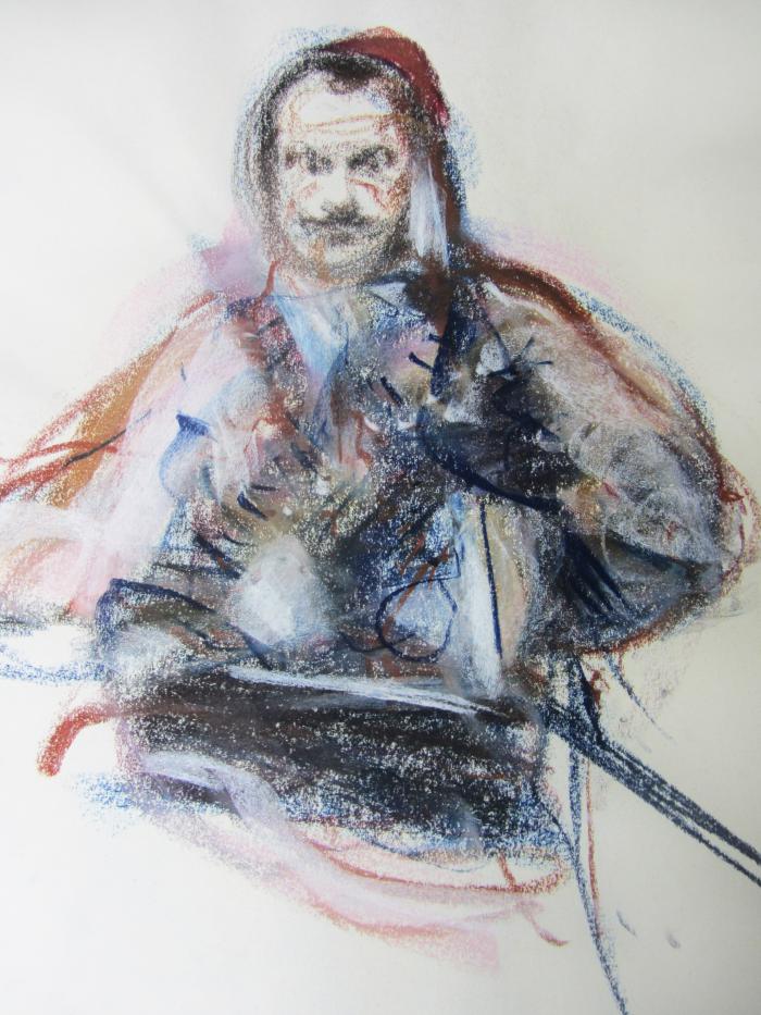 Ο Θεόφιλος μεσήλικας. Παστέλ Θανάση Μακρή.Συλλογή του καλλιτέχνη.
