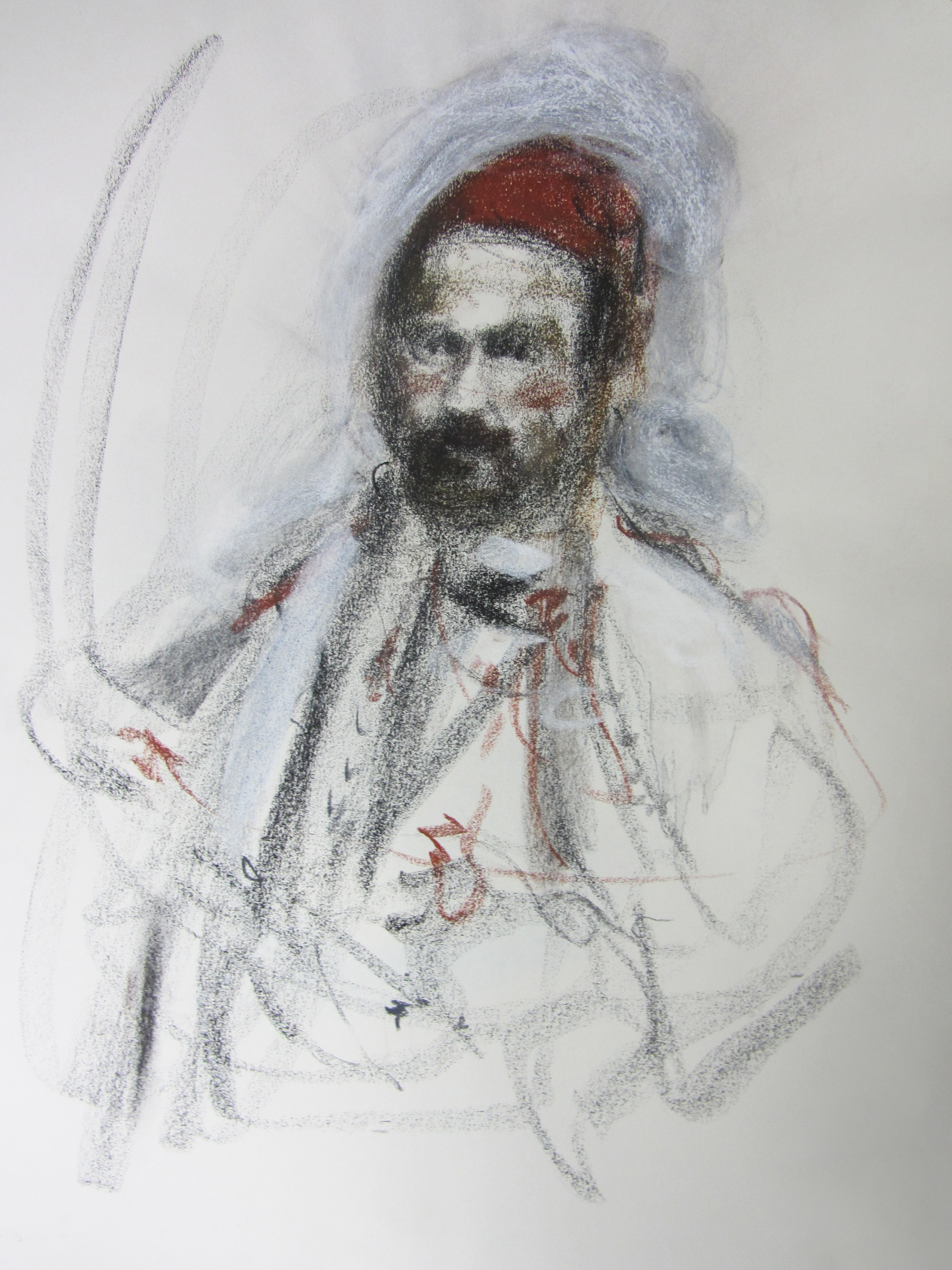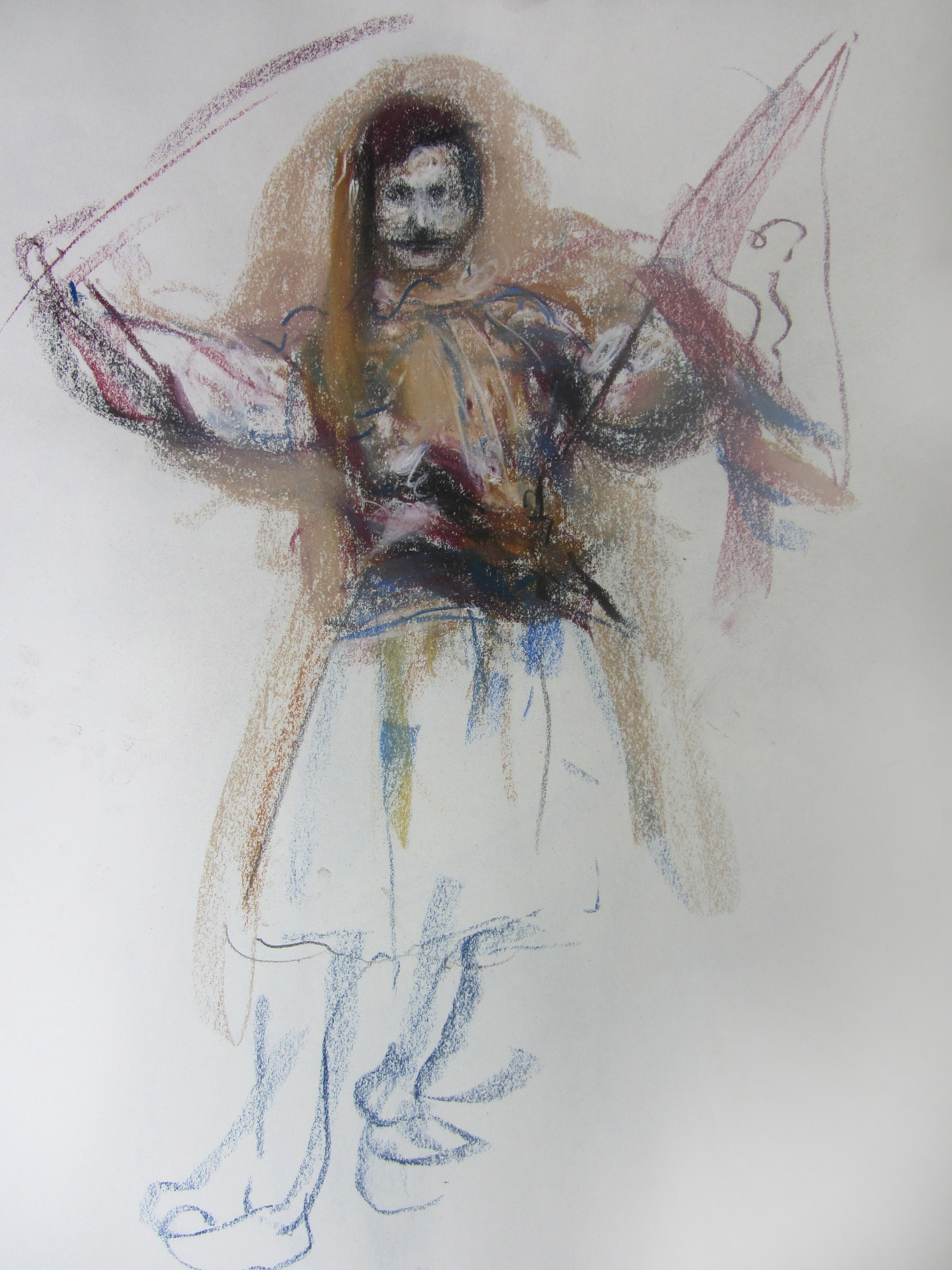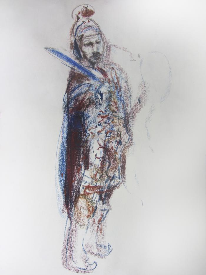 Ο Θεόφιλος μεσήλικας με σπαθί. Παστέλ  Θανάση Μακρή. Συλλογή του καλλιτέχνη.