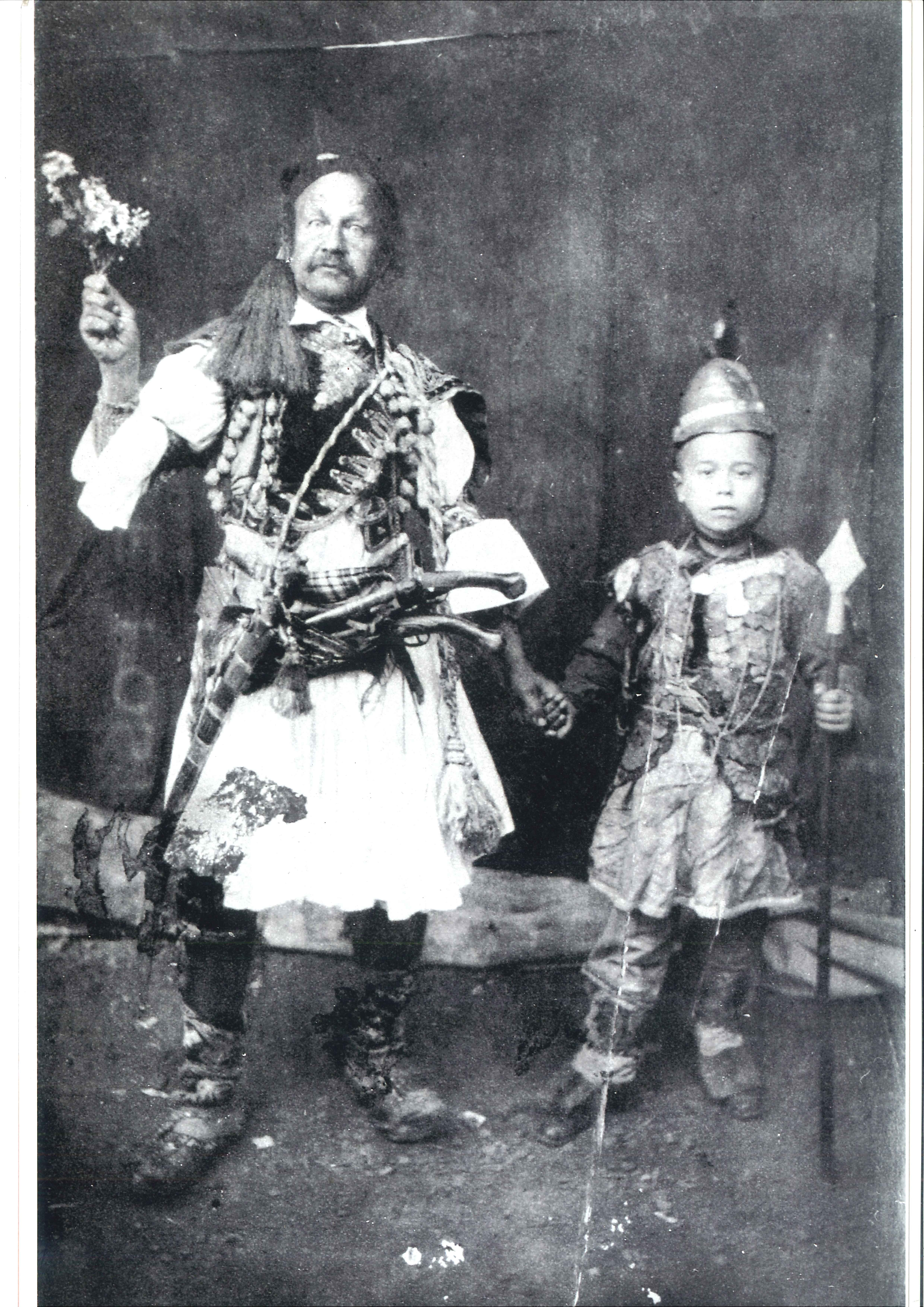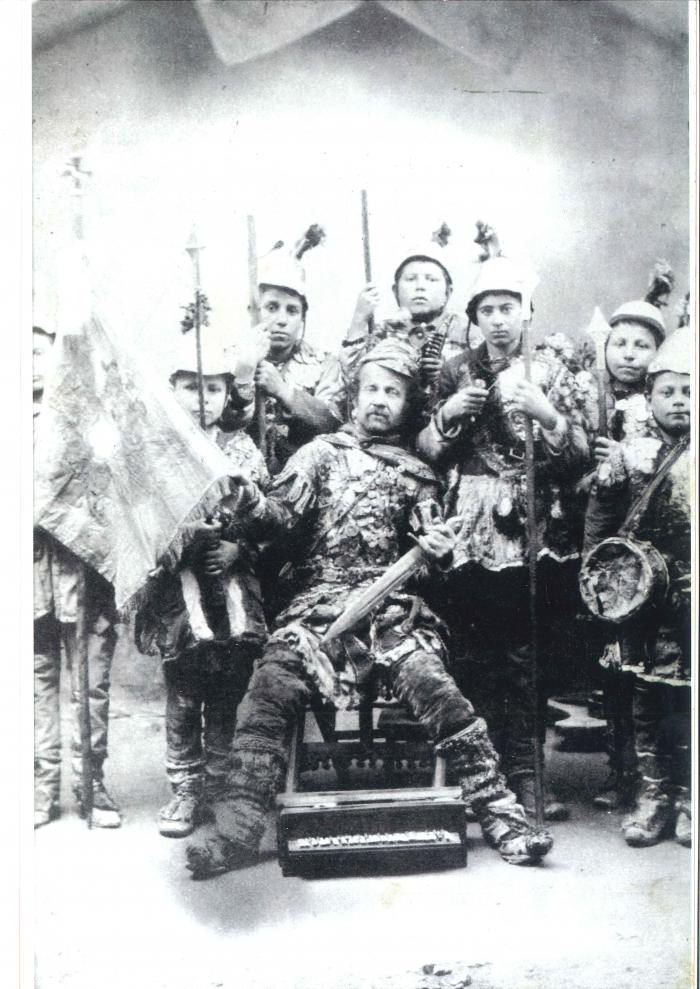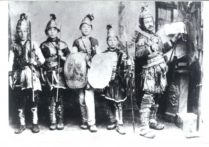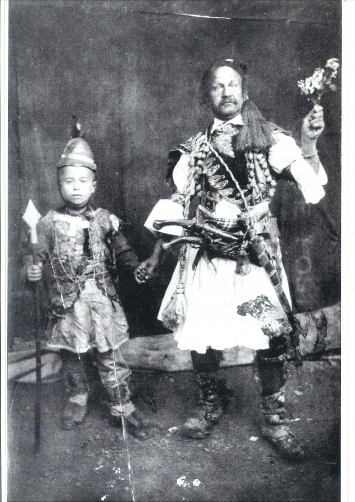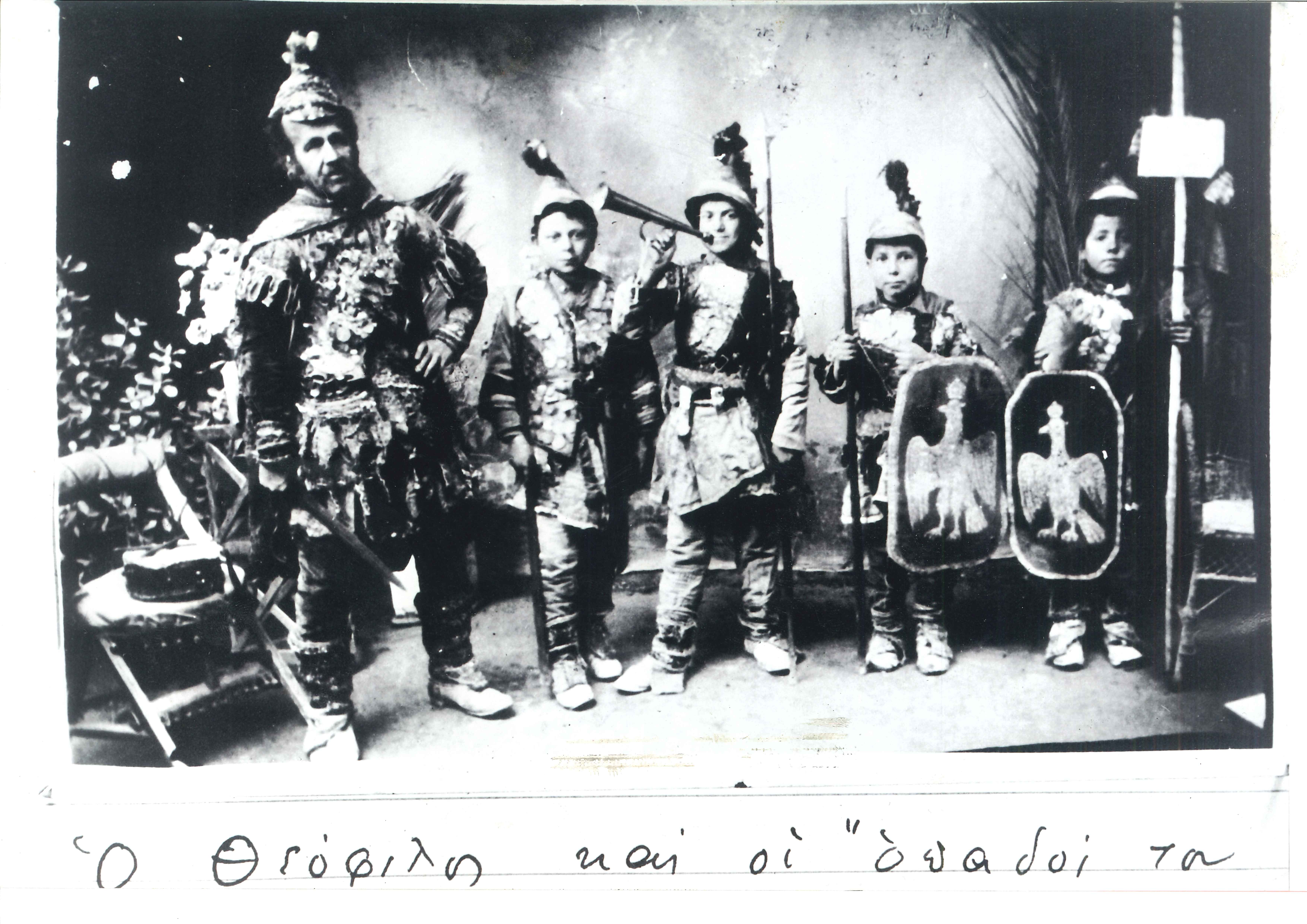 Ο Θεόφιλος ως Μεγαλέξανδρος και τα παιδιά που έντυσε μακεδονομάχους.