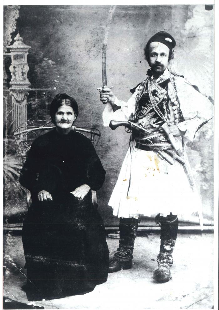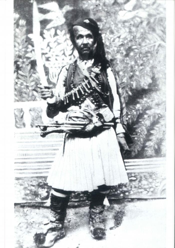 Ο Θεόφιλος σε γεροντική ηλικία με σπαθί.