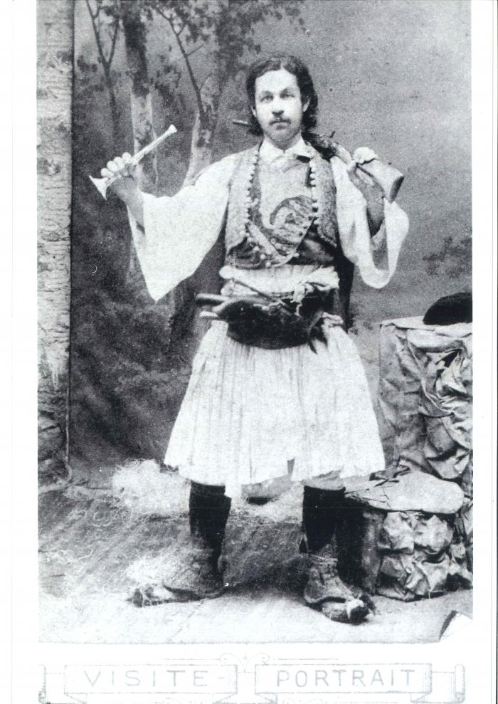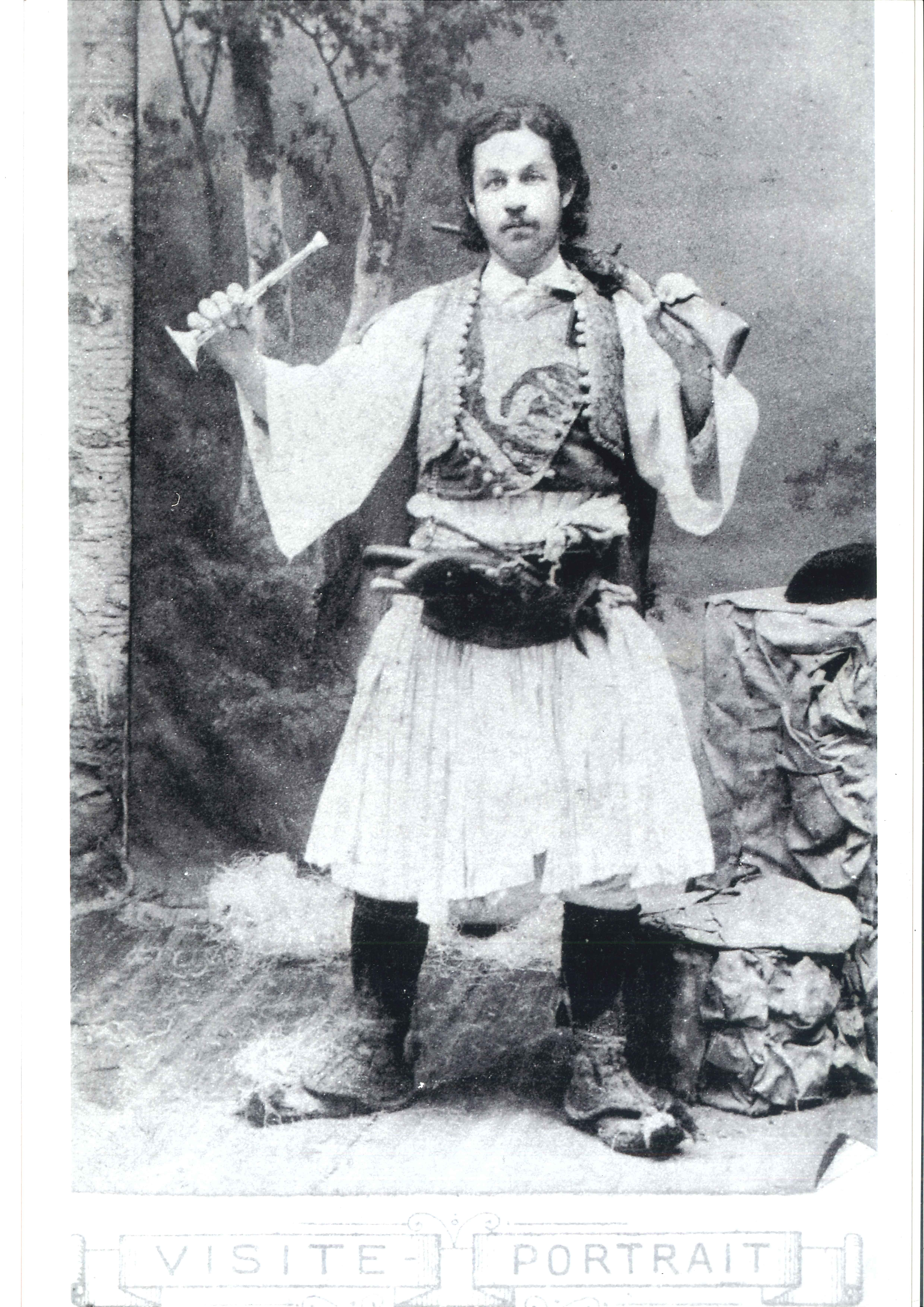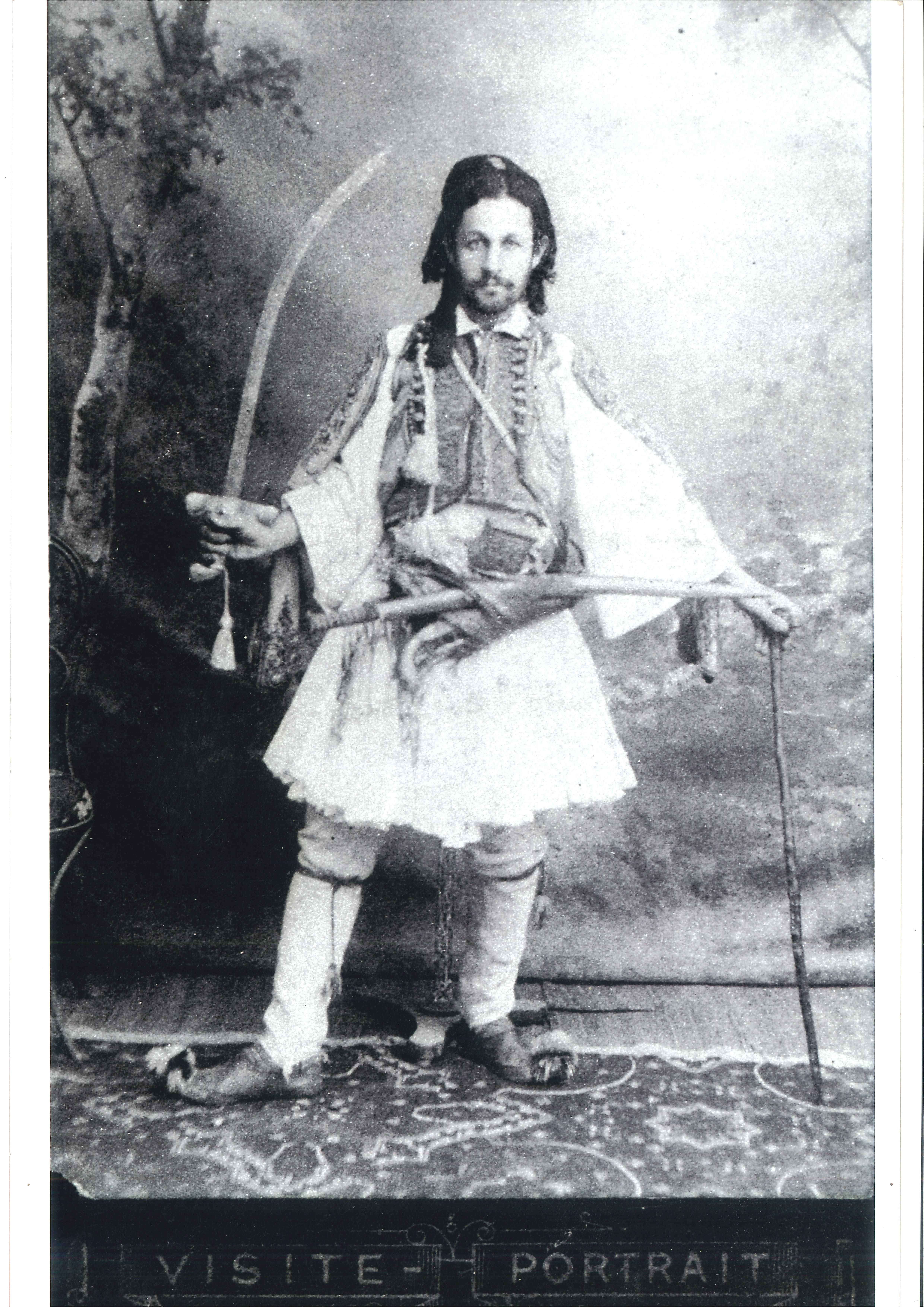 Ο Θεόφιλος πολύ νέος με σπαθί και μαγκούρα.