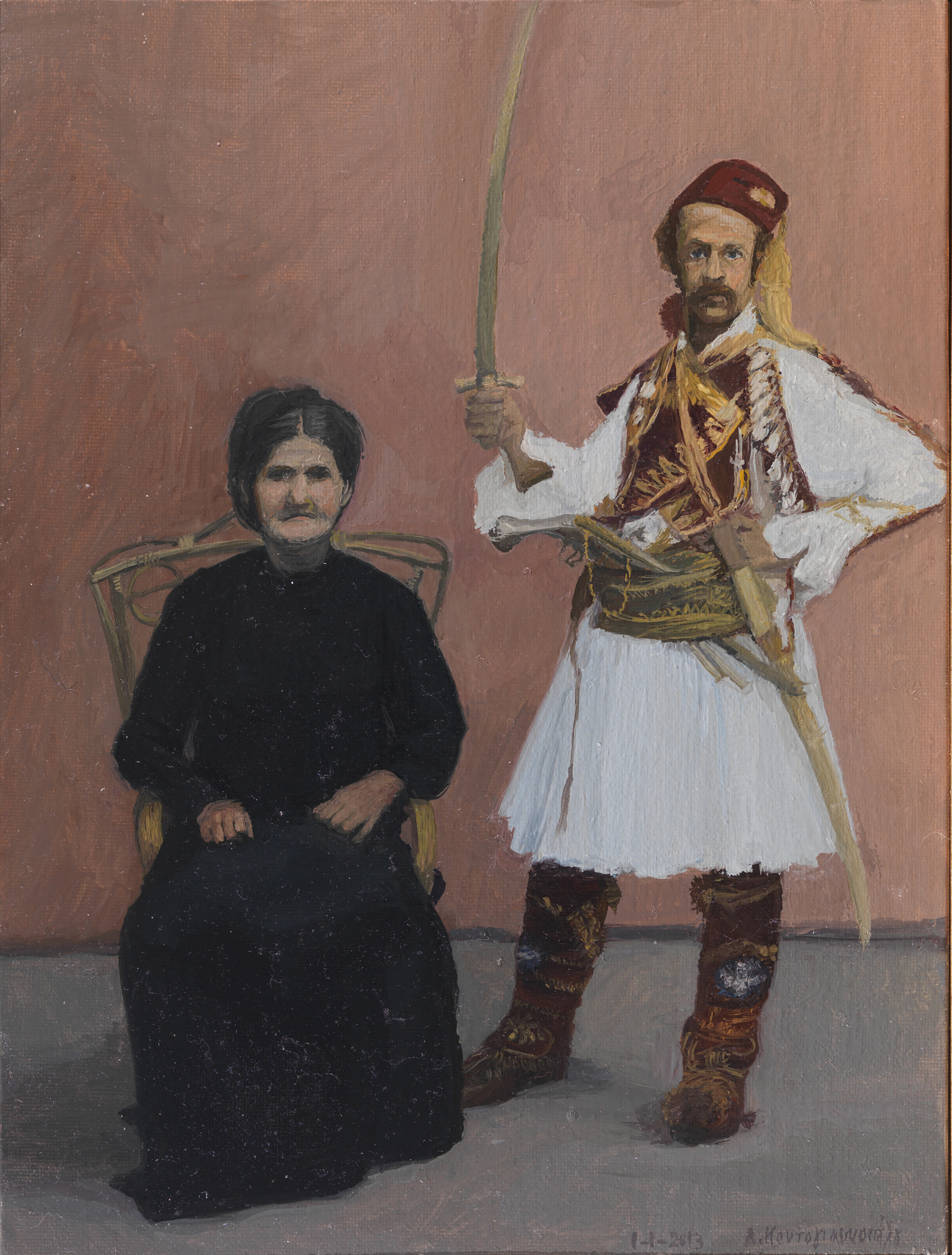 Ο Θεόφιλος γέρος με σπαθί. Επιζωγράφισε ο Γιώργος Σταθόπουλος. Ιδιωτική συλλογή.