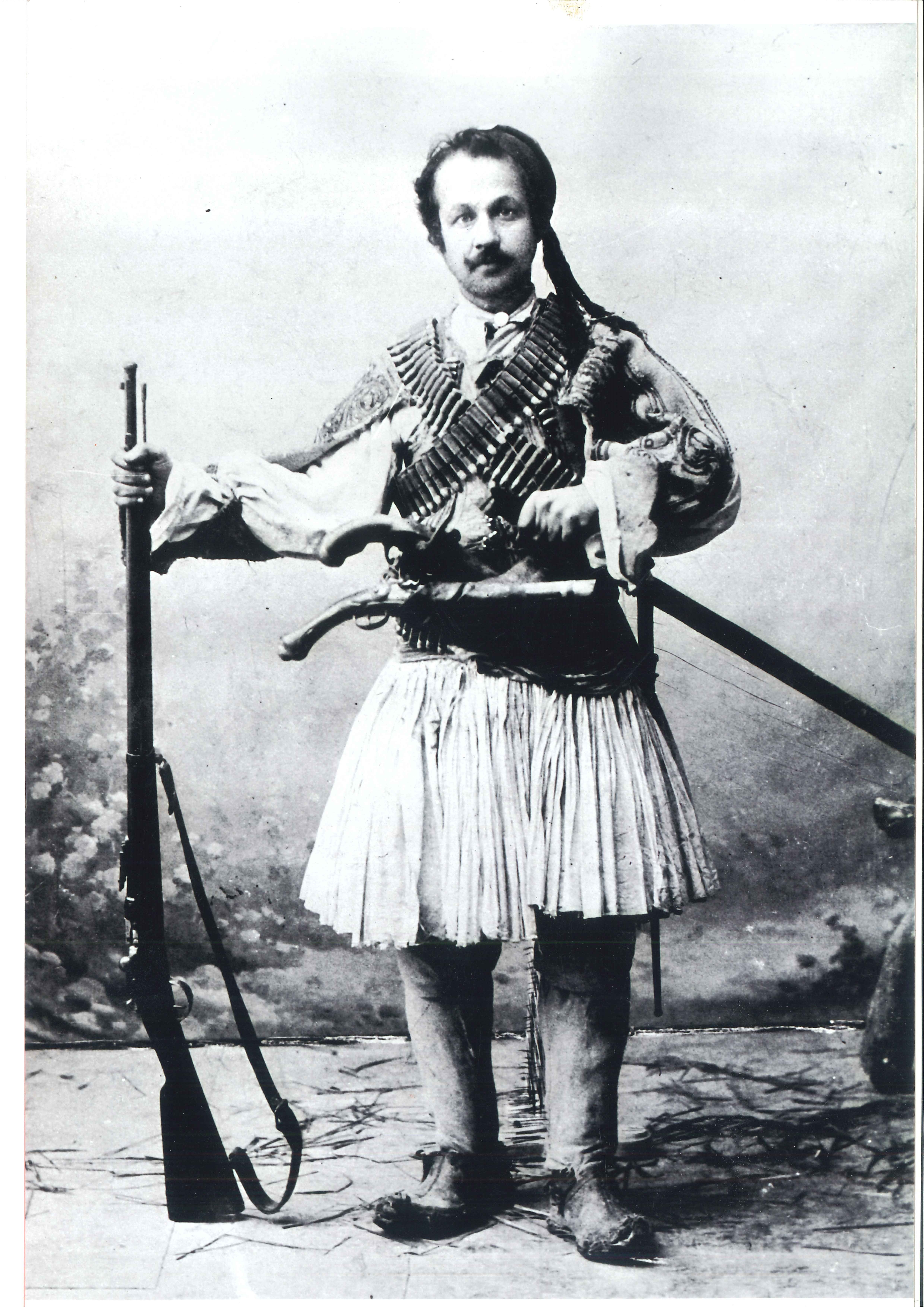 Ο Θεόφιλος με φυσεκλίκια και όπλο.