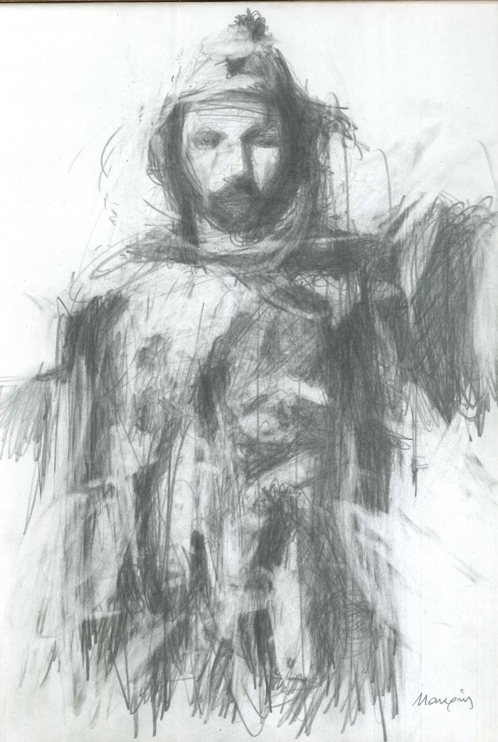 Ο Θεόφιλος Μεγαλέξανδρος. Σχέδιο του Θανάση Μακρή. Ιδιωτική συλλογή.