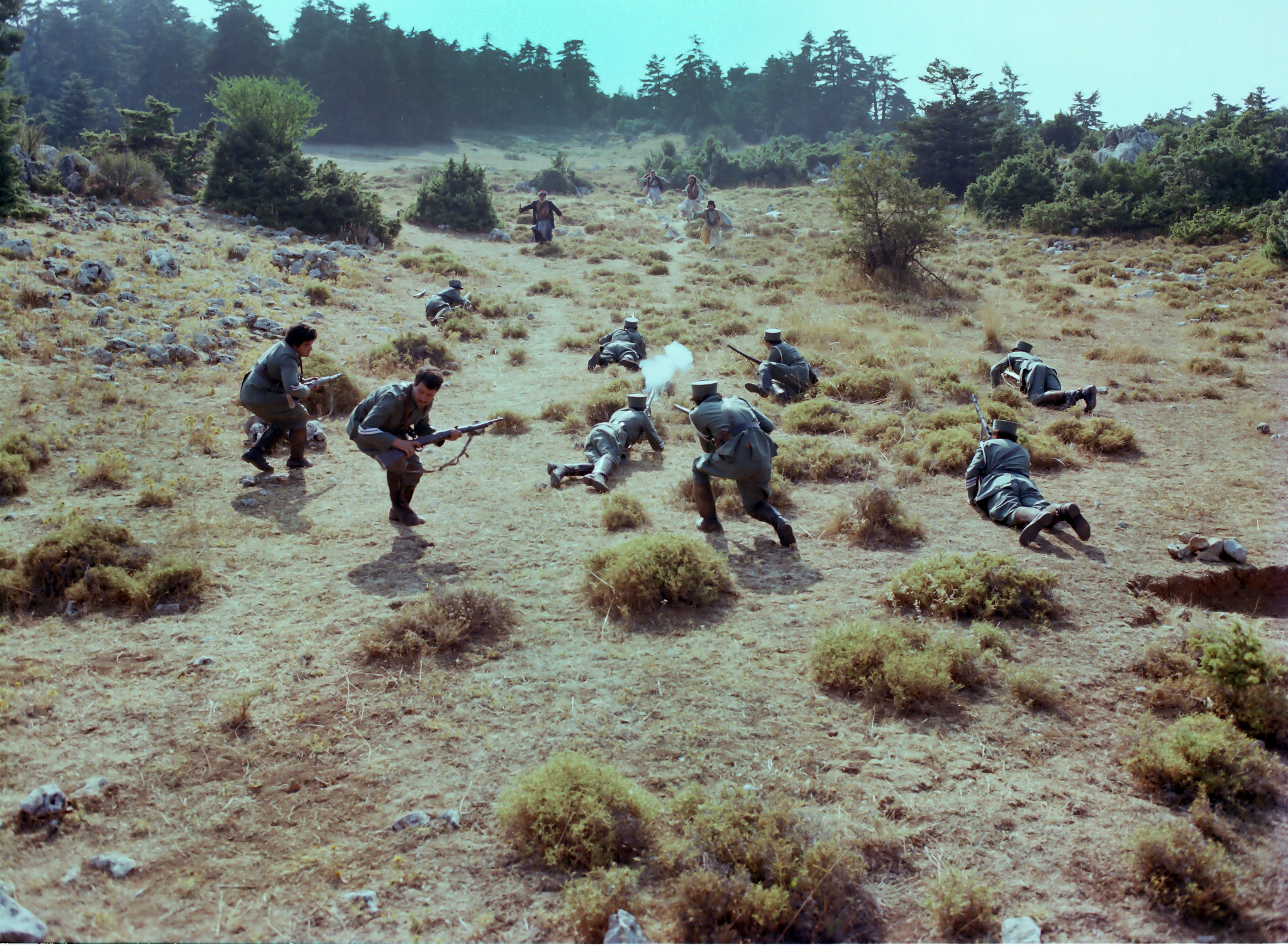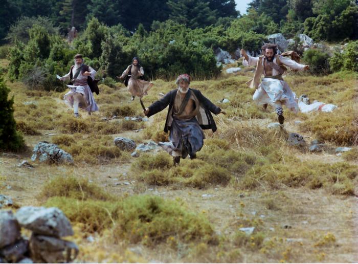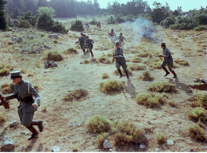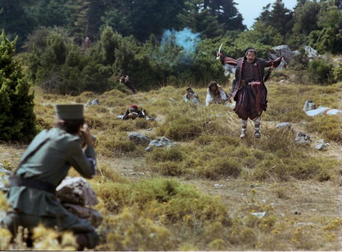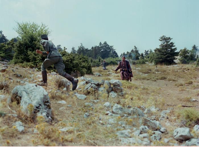 Ο υπαρχηγός των ληστών Γιώργος Σαμπάνης επιτίθεται σε έναν νεαρό χωροφύλακα.