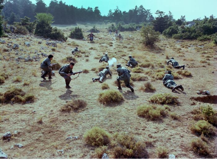 Η διμοιρία χωροφυλάκων σε λίγο θα συναντηθεί με τους ληστές που τους περιμένουν ταμπουρωμένοι.