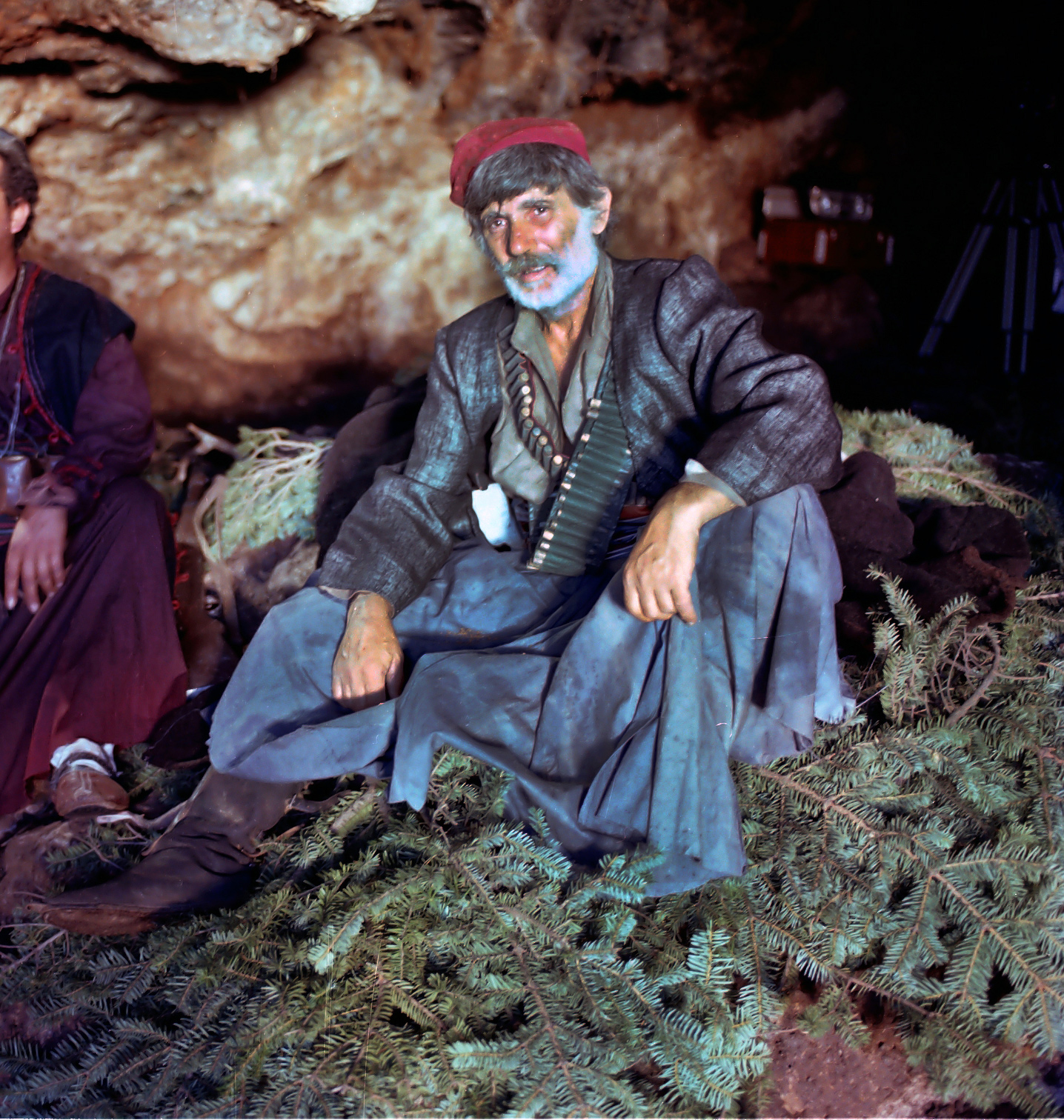 Ο αρχιληστής καθισμένος πάνω σε κλαδιά από έλατα παρακολουθεί